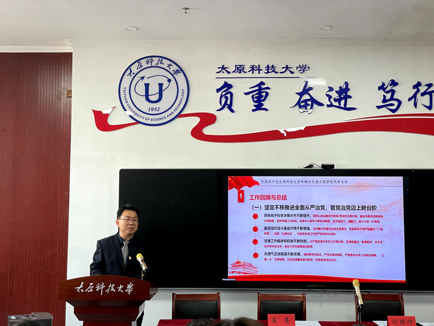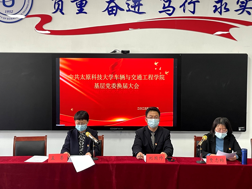 3月8日,太阳成集团tyc122ccvip党委顺利召开中共太阳成集团tyc122ccvip委员会换届大会。学院党委书记刘国帅同志代表上届委员会做了题为《凝心聚力担使命 踔厉奋发谱新篇 为加快建设特色鲜明高水平学院而努力奋斗》的工作报告,会议由贾志绚同志主持。