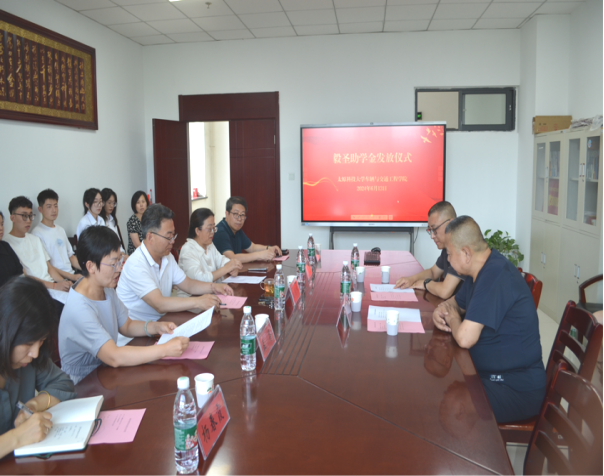 为持续推进对经济困难大学生的关心关爱,切实解决他们的实际困难,帮助他们顺利完成学业,实现人生梦想。2024年6月13日,太阳成集团tyc122ccvip于综合楼313会议室召开毅圣助学金发放仪式。学院党委书记刘国帅、院长贾志绚、党委副书记兼副院长孟香、副院长张喜清、副院长杨春霞,山西毅圣数智消防股份有限公司董事长陈仲毅、总经理王强出席发放仪式,教师代表和全体受助学生参加此次活动。孟香副书记主持发放仪式。