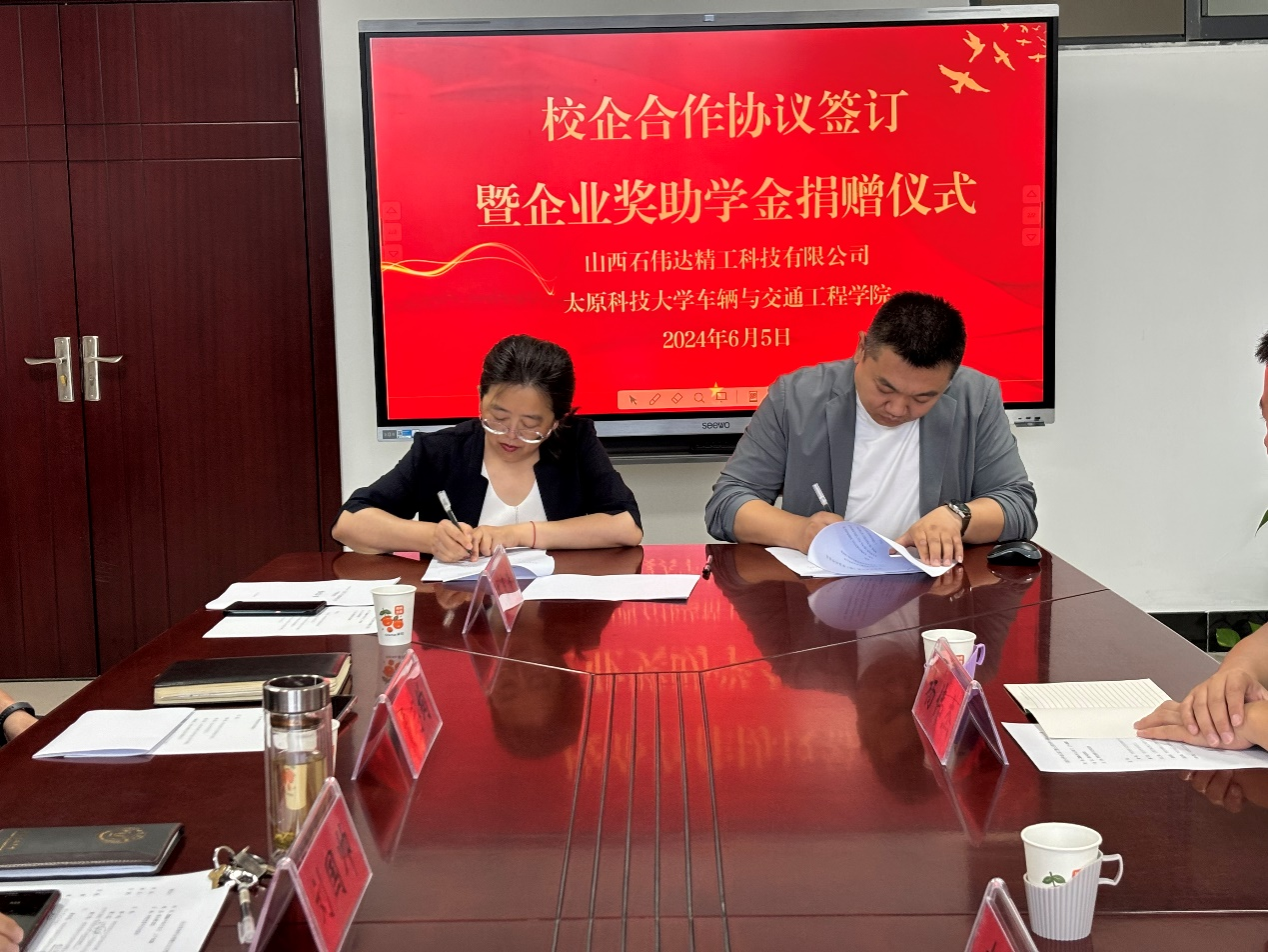会上,山西石伟达精工科技有限公司向学院捐赠奖助学金3万元,标志着双方合作迈向全方位、高层次、多领域的新阶段。奖助学金旨在表彰在科技创新、创新创业、实践活动和学习成绩等方面表现突出的学生,帮扶和资助经济困难的学生完成学业。
