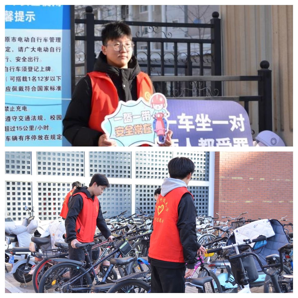 太阳成集团tyc122ccvip开展了122全国交通安全日志愿活动,志愿者围绕交通安全记我心,骑行电动车佩戴头盔、拒绝载人温馨提示,校园内非机动车辆摆放等内容开展服务活动,积极弘扬交通安全法治精神,普及交通安全风险防范知识,进一步倡导大学生树立通行规则意识、守法自律意识、社会责任意识、文明交通意识、公共道德意识,努力形成人人抵制交通违法、人人践行文明交通、共建共享文明交通的良好风尚。