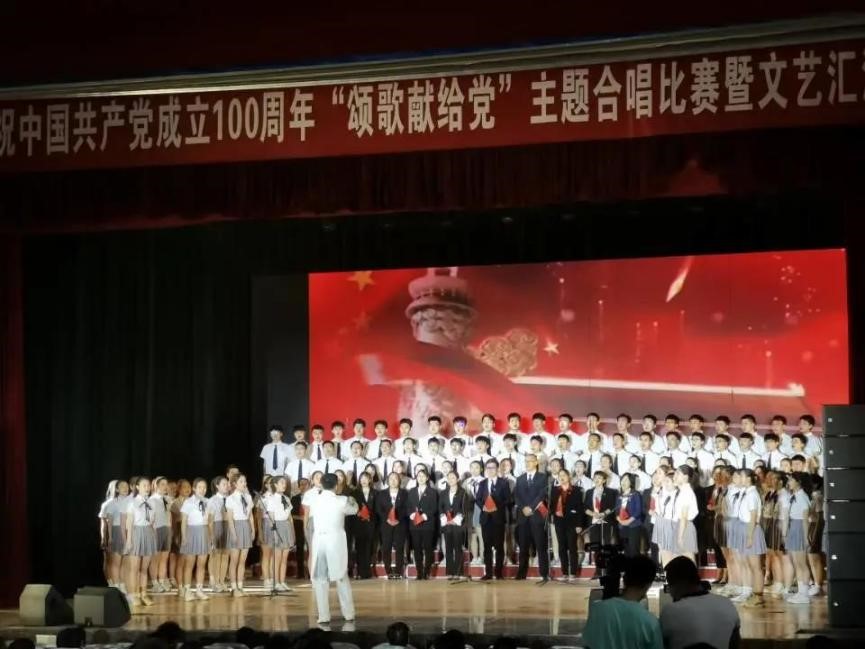 为庆祝中国共产党成立100周年,歌颂党的百年光辉历程与伟大功绩,我校于2021年5月24日下午在大礼堂举办庆祝中国共产党成立100周年“颂歌献给党”主题合唱比赛暨文艺汇演。