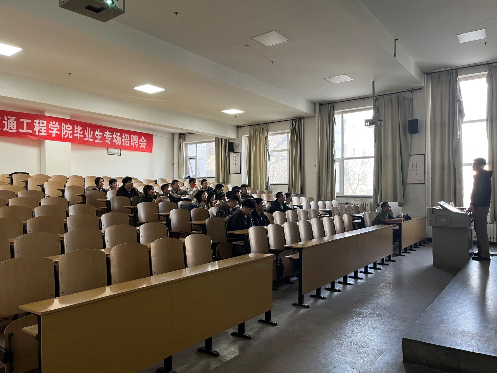 同时,在了解到大运、吉利等公司宣讲会的召开时间,学院大力动员车辆工程、交通运输专业学生参加宣讲会,上周参加专场招聘会学生近300人次。