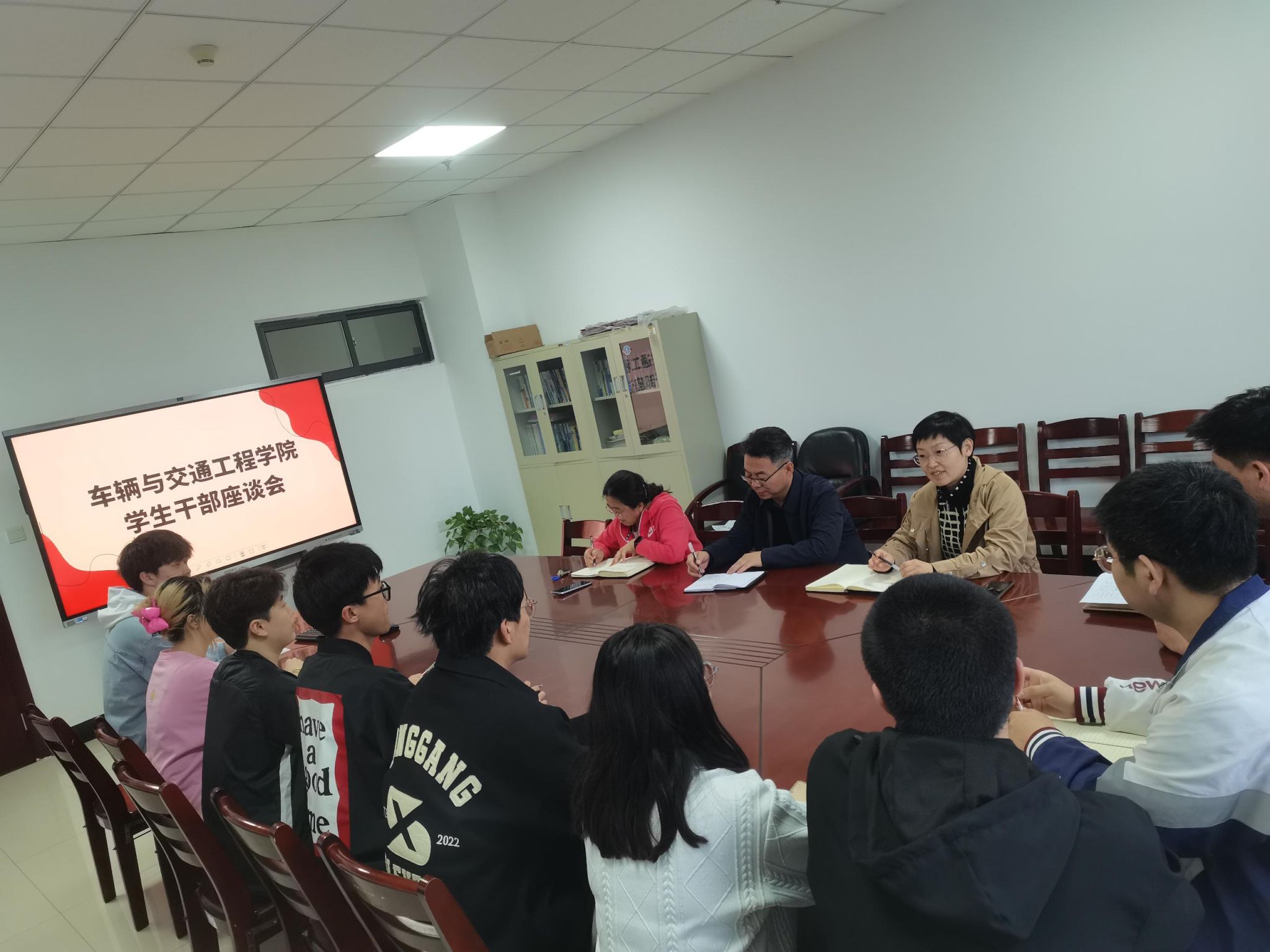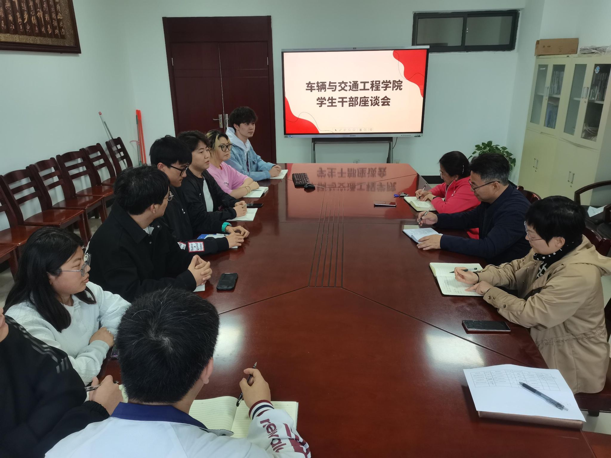 与会领导强调,学生干部作为联系学院和同学们的纽带和桥梁,一要正确认识自己,注重专业知识学习和综合能力培养,树立良好的形象和威信;二要严格要求自己,加强自我管理,有服务意识和奉献精神;三要全面提升自己,多角度看待问题、思考问题,寻求解决问题的有效方法。学校运动会召开在即,与会领导对安全方面进行了着重强调,要求对所有参赛学生的身体健康状况进行全面了解,保证安全有序参加比赛。