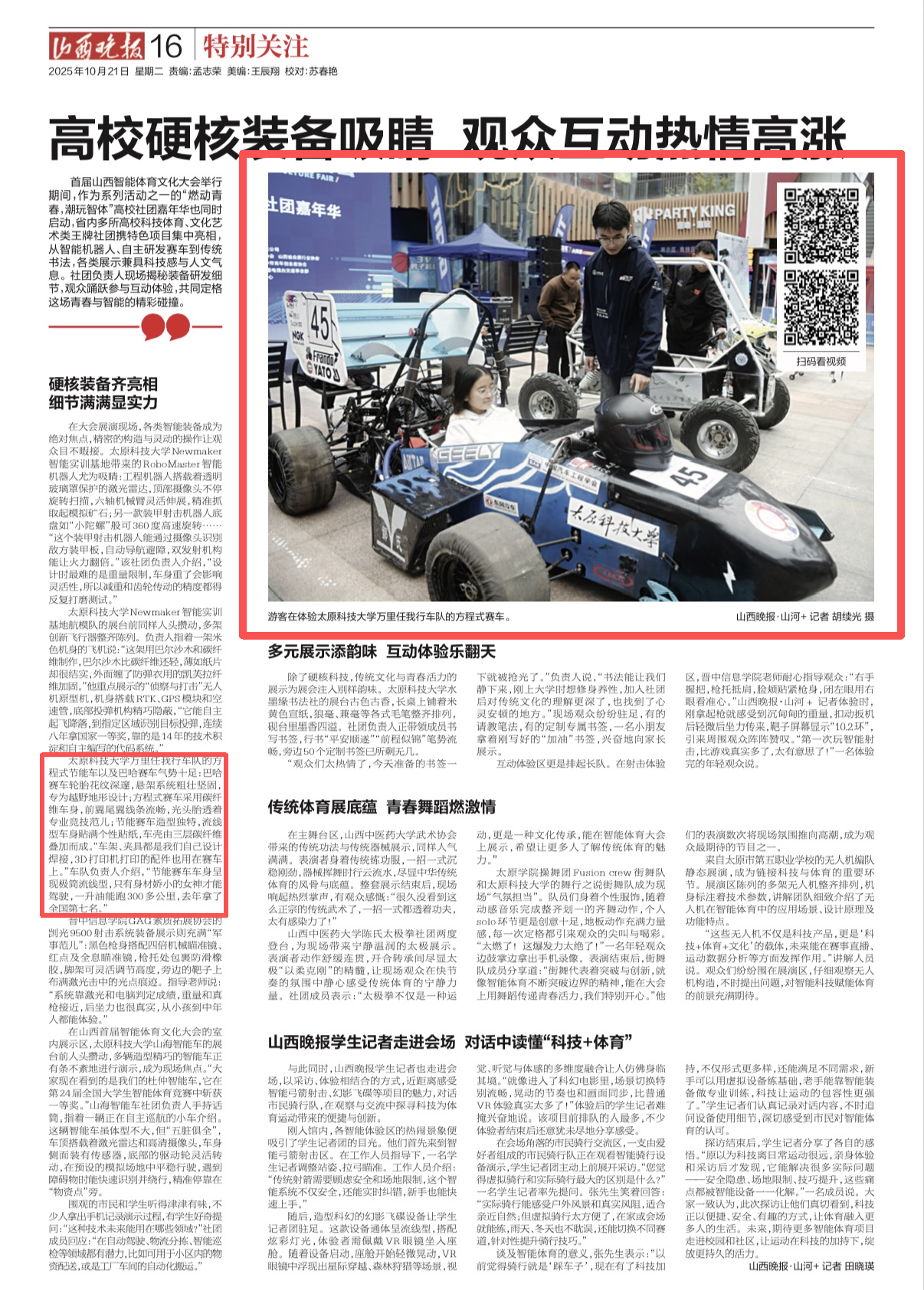 10月18日,由山西日报主办的首届山西智能体育文化大会系列活动 “燃动青春,潮玩智体”高校社团嘉年华在太原市图书馆(南站国贸T6分馆)顺利开展,我院万里任我行车队(下简称“万里车队”)受邀参与本次展演,以实际行动为活动赋能,成为现场备受关注的参与力量。