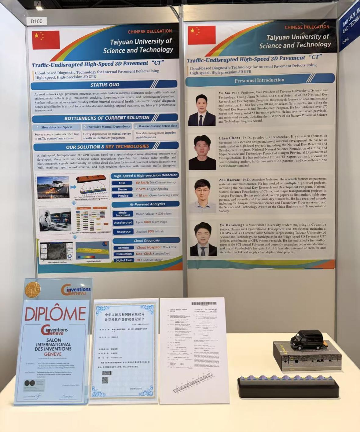 近日,第51届瑞士日内瓦国际发明展在日内瓦举行。我院于新教授团队研发的“基于高速高精度三维探地雷达的道路结构内部病害快速诊断技术”,从来自全球35个国家和地区的1000多项发明中脱颖而出,荣获展会最高级别的“评审团特别嘉许金奖”,实现了我国在道路基础设施智能检测领域的又一重要突破。该成果依托国家重点研发计划项目(2021YFB2601200),围绕既有道路韧性提升中内部健康状况快速诊断的需求,以高速高精度三维探地雷达装备为核心,融合海量数据智能识别算法与云端协同诊断平台,构建了集“采集—识别—诊断”于一体的智能化检测技术体系。