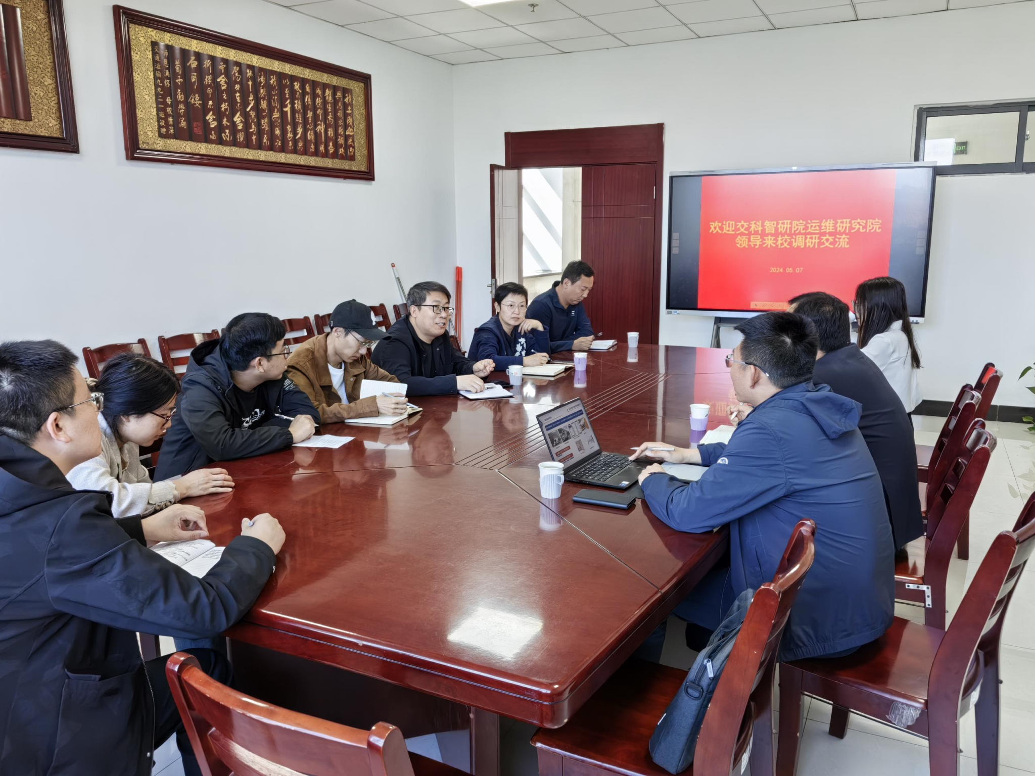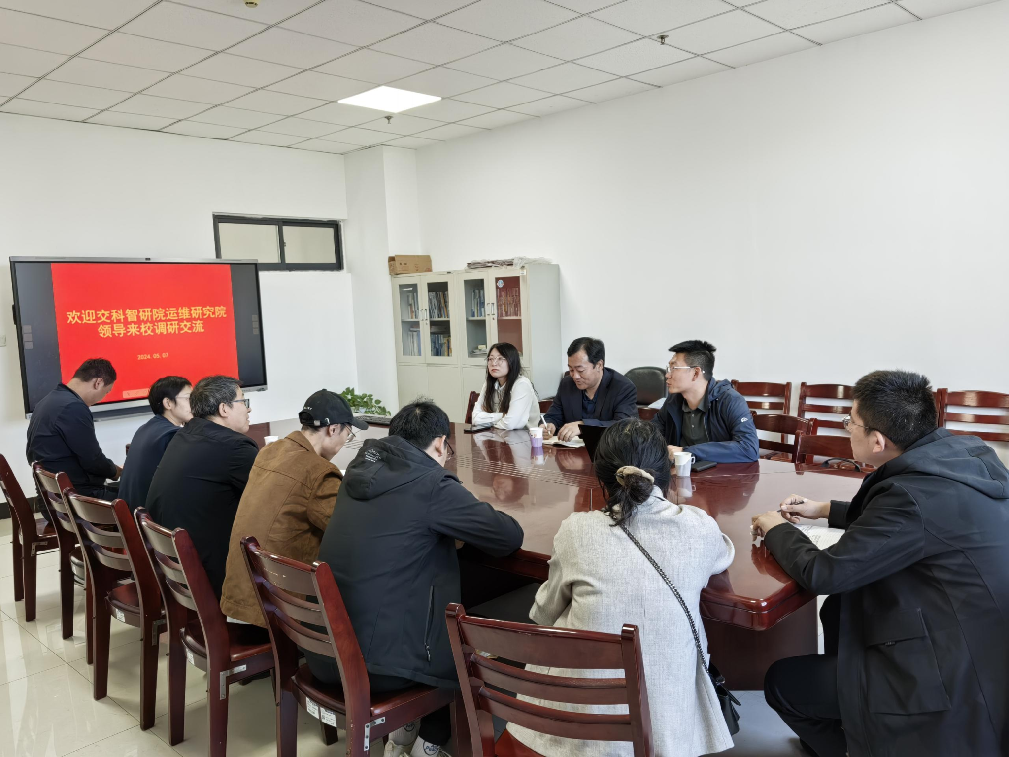 2024年5月7日下午,山西智慧交通研究院有限公司智慧运维研究院陈小兵院长一行来学院就联合培养研究生事宜进行调研交流,学院孟香副书记、张喜清副院长、智慧交通研究所韩智强所长及相关老师出席了会议。