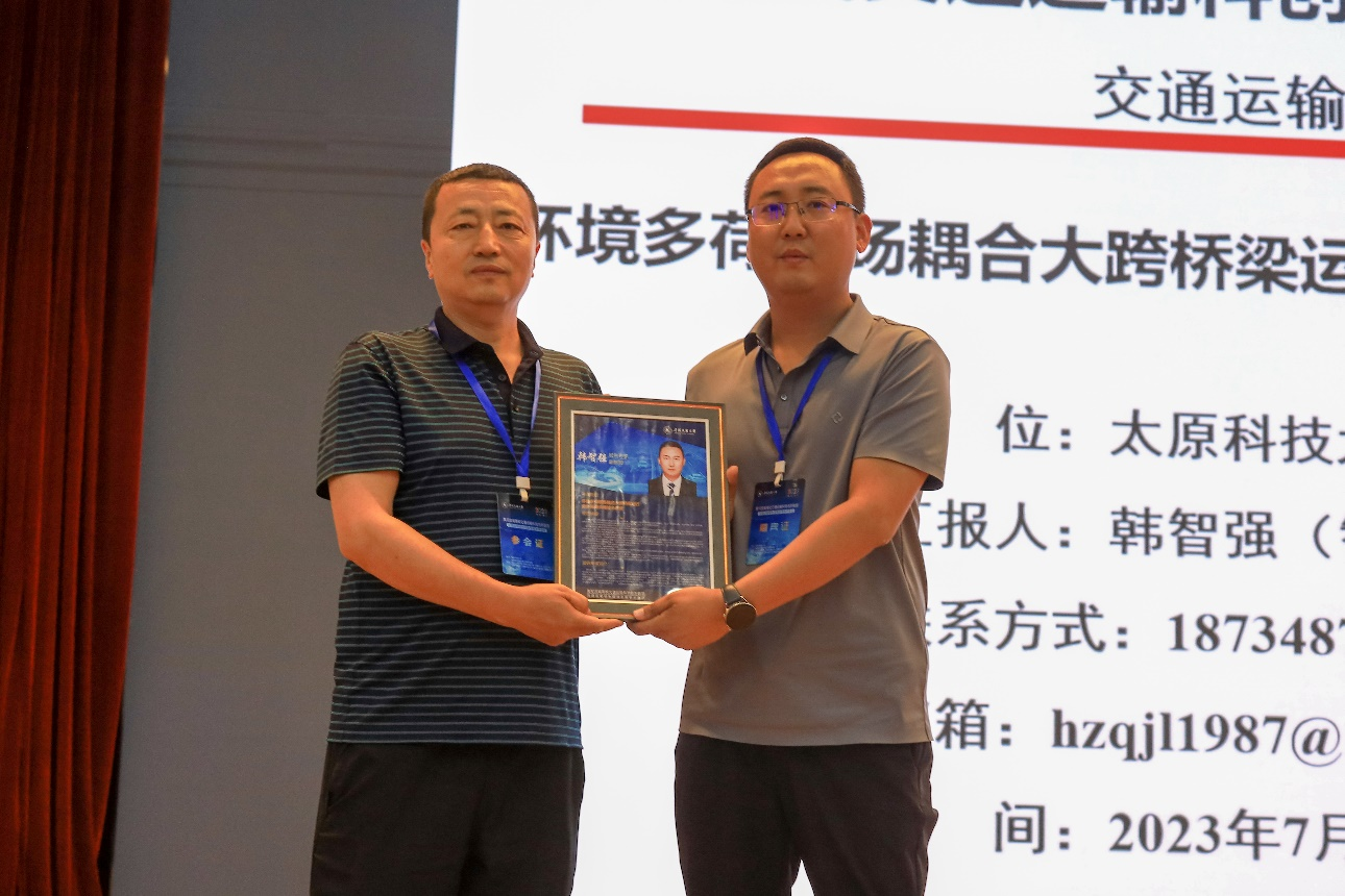 我院智慧交通研究所所长韩智强副教授应邀作了《环境多荷载场耦合大跨桥梁运行安全保障关键技术研究》的主题报告。