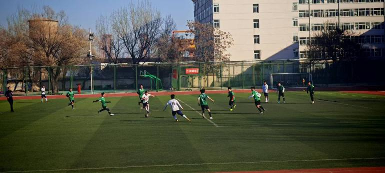赛场上,我院足球队的队员稳扎稳打,默契地传递每一个球,带着坚毅的眼神,怀着必胜的决心拼搏于每一场比赛。开场仅仅十分钟,萨巴依丁同学率先抓住机会,为我院取得1:0的领先优势,点燃了全场的氛围。随后,王可凡同学再次展现了精湛的球技,巧妙突破对方防线,成功将球踢入球门,比分扩大到2:0。我院的防守队员们也表现得极为顽强,依靠队员之间的紧密协作,一次次成功化解了对方的进攻威胁,力保球门不失。